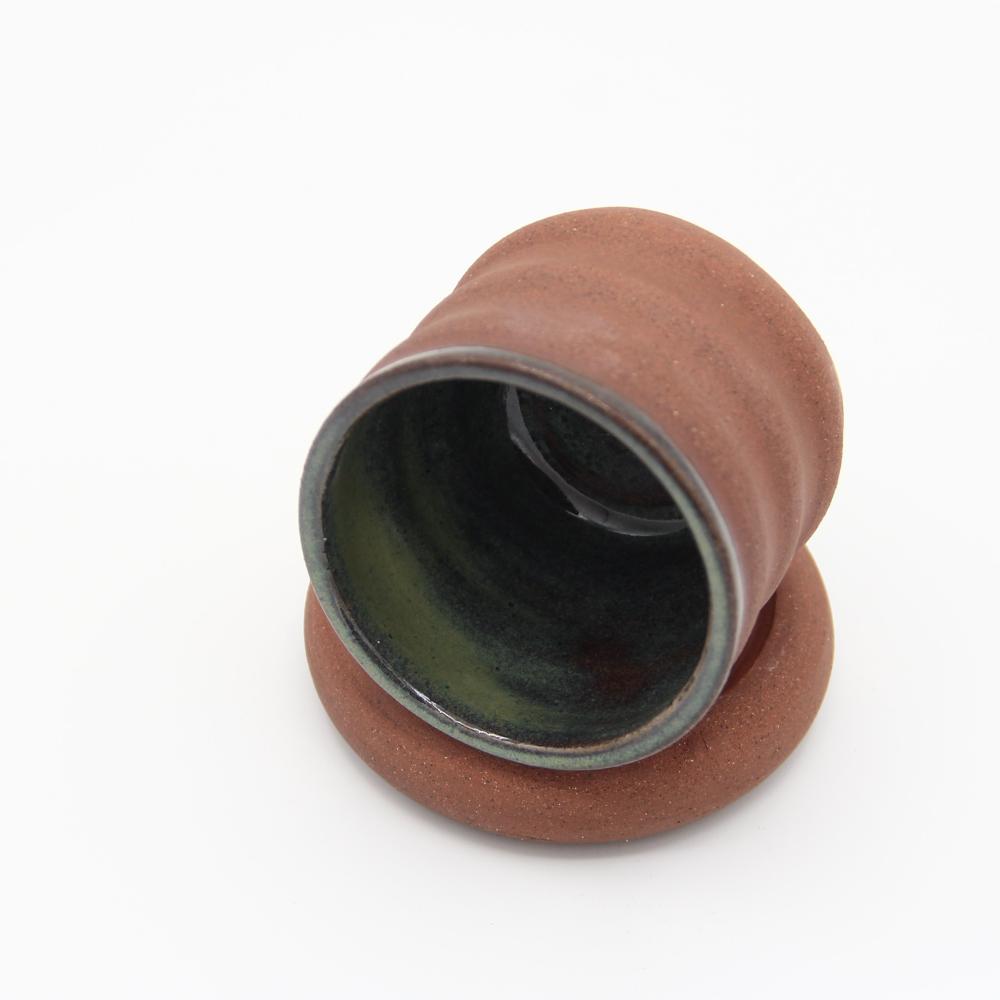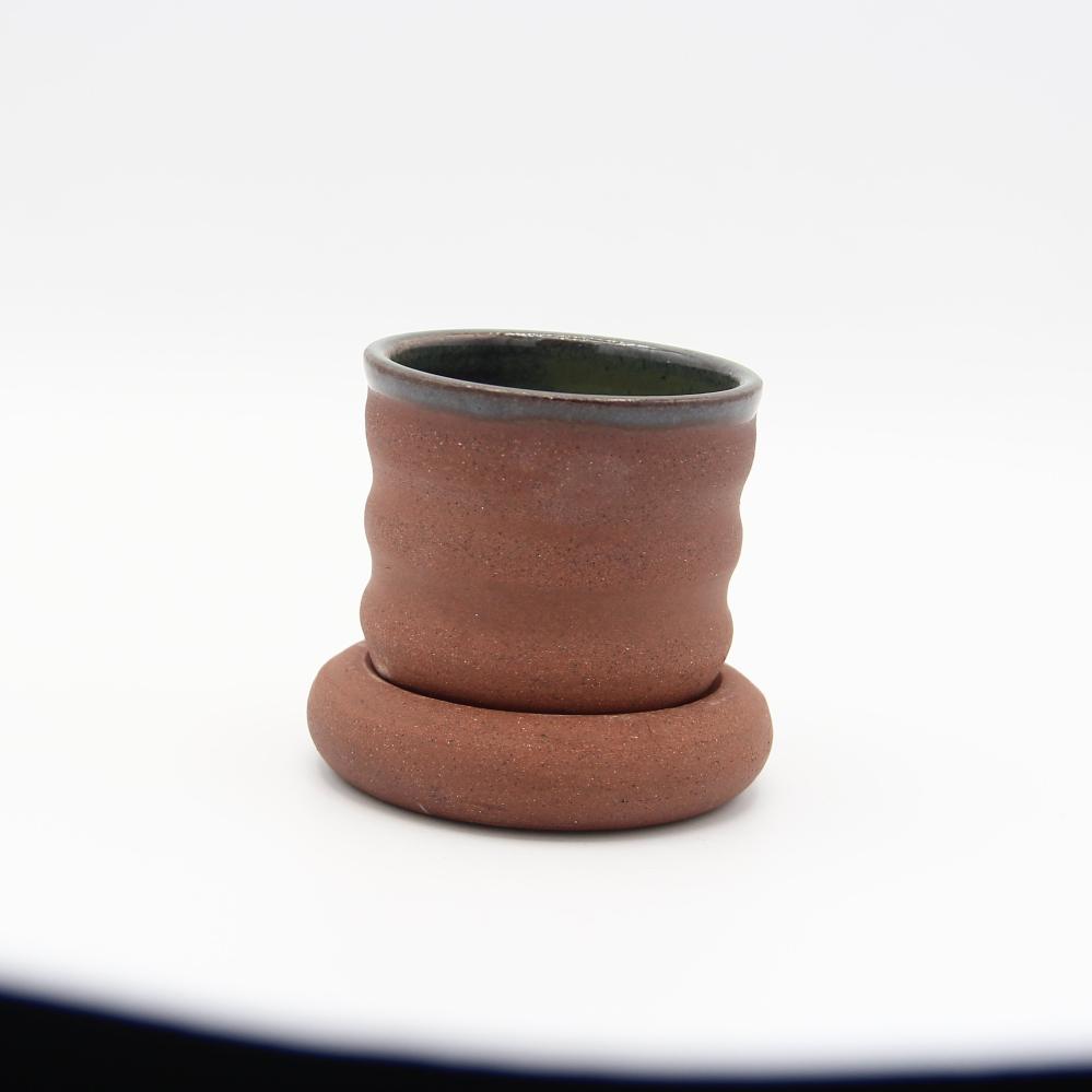 كوب اسبريسو مع صحن مصنوع صناعة يدوية من الطين الأحمر وبلمسة من اللون الأخضرالحجم: 70-80 ملمخصص للاسبريسو